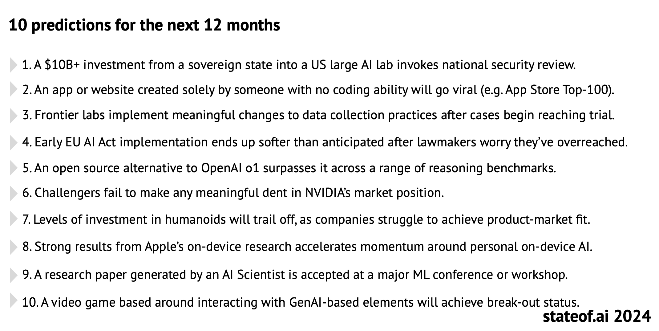 Every State of AI Report ends with predictions, here are some for the upcoming year ahead: